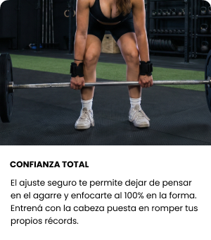 No se afloja, se ajusta al instante y se adapta a cualquier muñeca para un soporte seguro sin perder comodidad. Solo enfocarte en levantar.