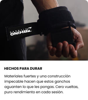 Cada detalle de los Rhino Hook Straps están hecho para que entrenes cómodo, seguro y rindas al máximo en cada entrenamiento.